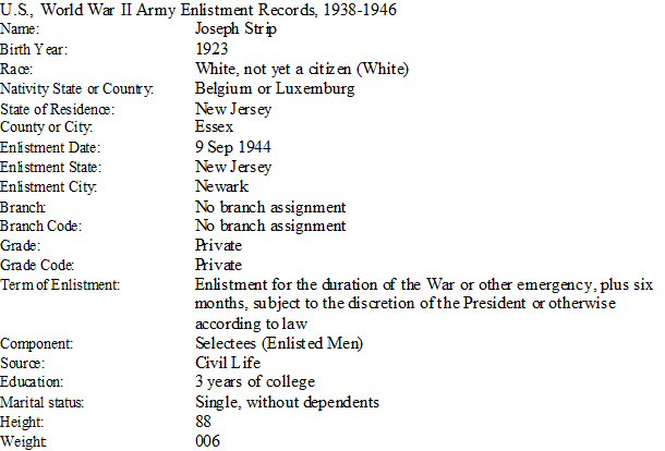 Last Name: Name Stripounsky used through June 10, 1944; Sept 8, 1945 now found as Strip (military documents).