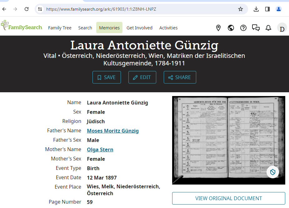 Notes for LAURA ANTONIETTE GUNZIG: