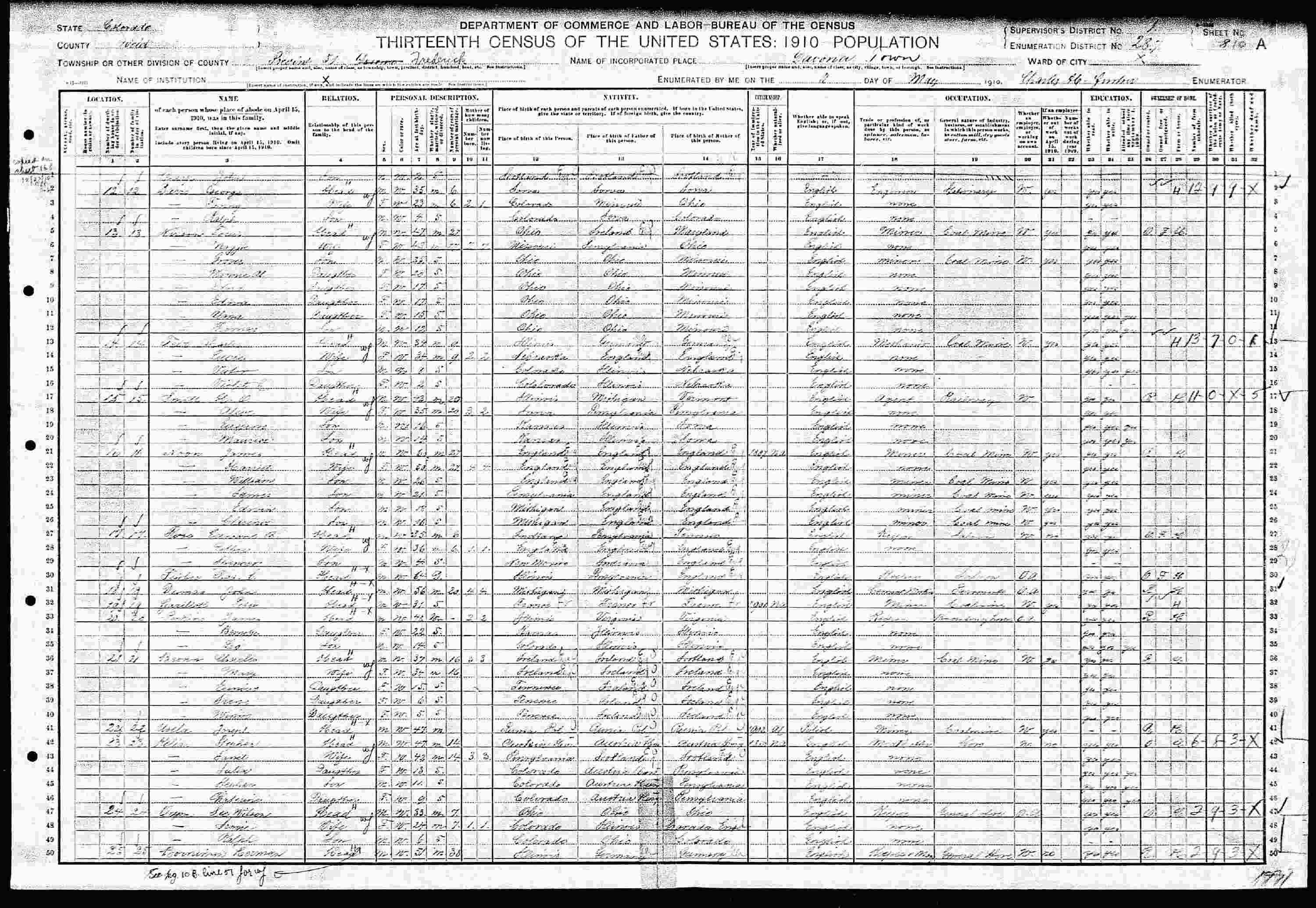 May 2, 1910 - Supervisor's District 1, Enumeration District 237, Frederick, Weld County, Colorado.