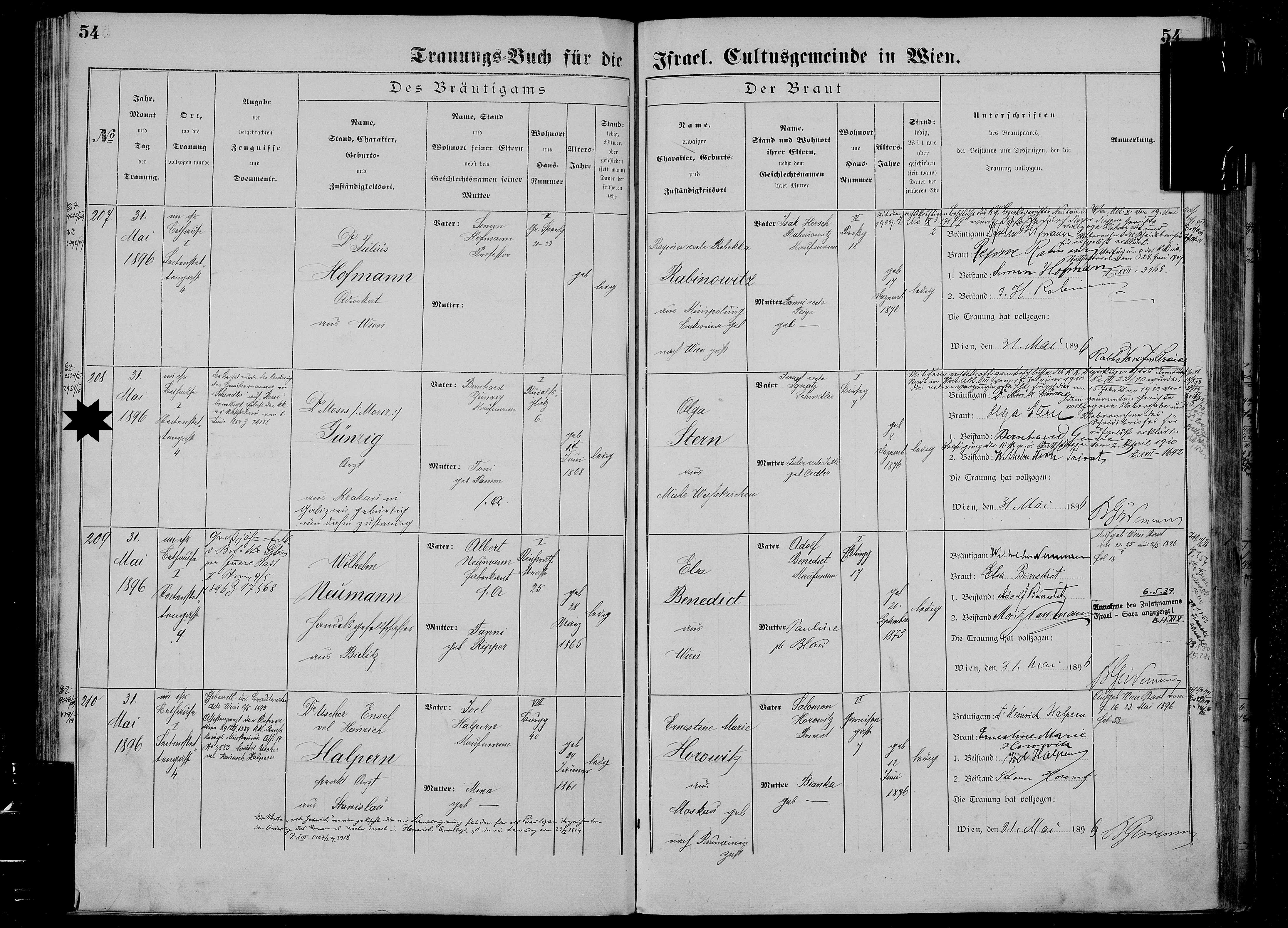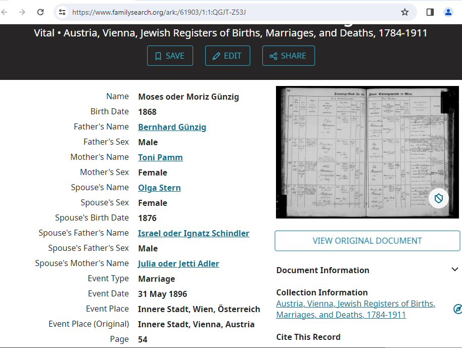 Moises "Moriz Karol" Gunzig, Dr May 31, 1896 in Innere Stadt, Vienna, Austria. (Divorce: February 15, 1910, Vienna, Austria.)