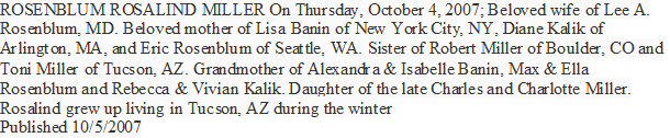 Notes for ROSALIND BARBARA MILLER ROSENBLUM: