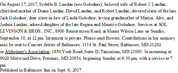 Notes for SYDELLE B GOLODNER LANDAU: