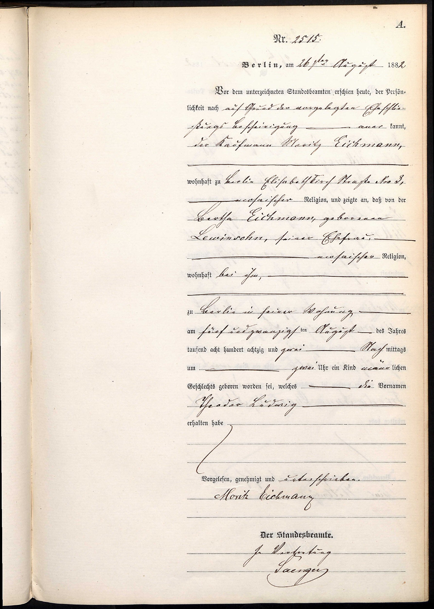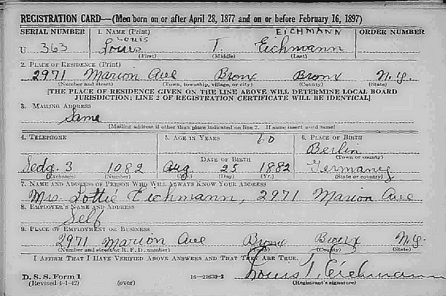 Son of Moritz and Bertha (Lewinshon) Eichmann.