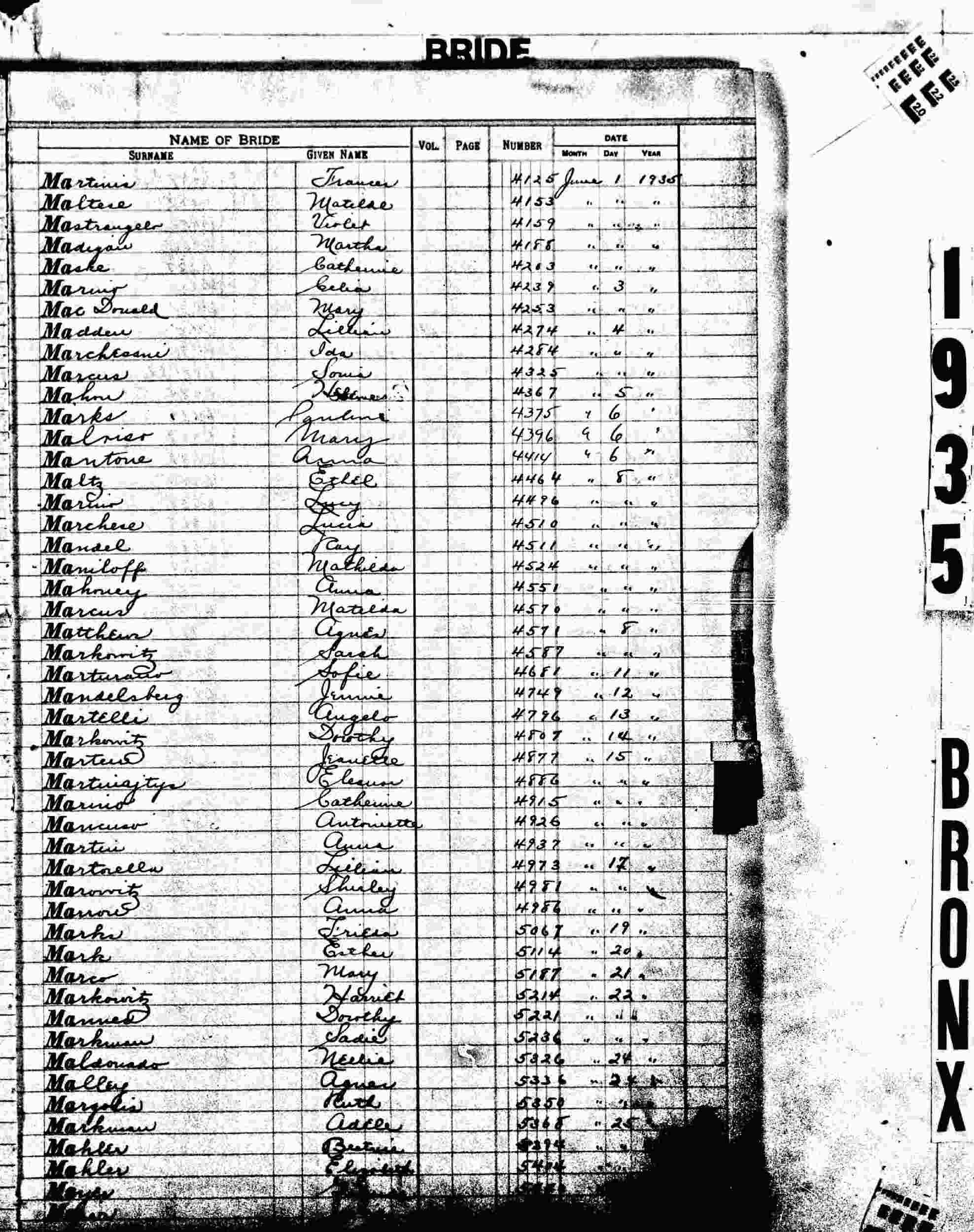 Married: Theodore August Henry Bernitt June 30, 1935 in Bronx, New York. (Marriage License: June 25, 1935, Bronx, New York, #8294.)