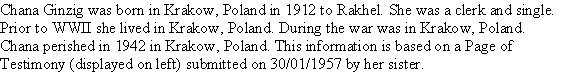 Died: 1942 in WWII (Shoah) - Krakow, Poland.