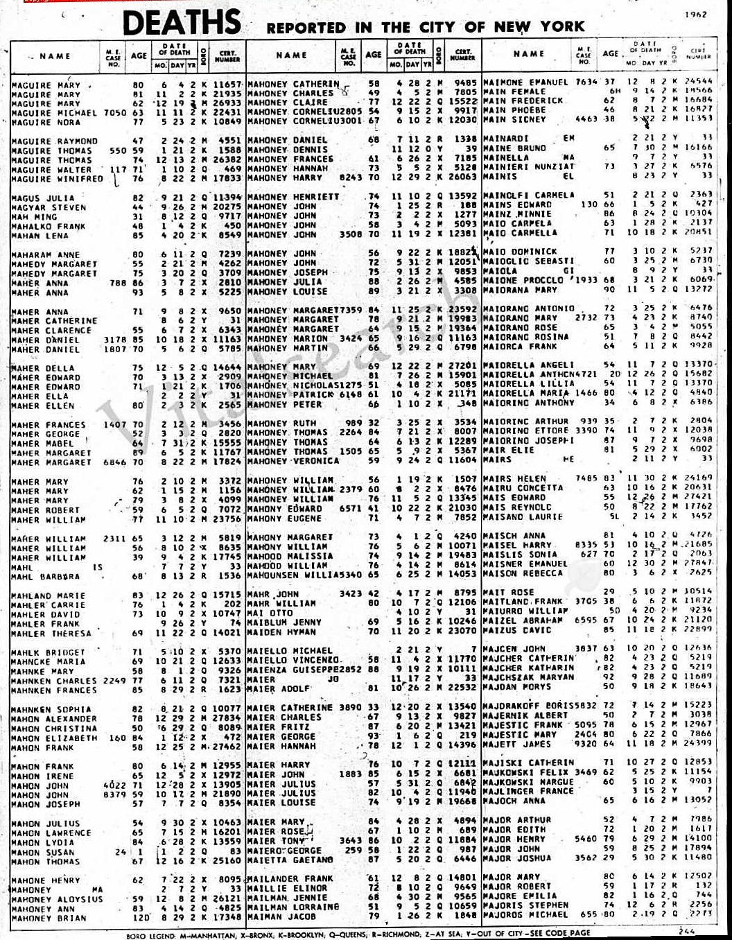 Died: October 9, 1962 at sea. (Death certificate: #10747.)
