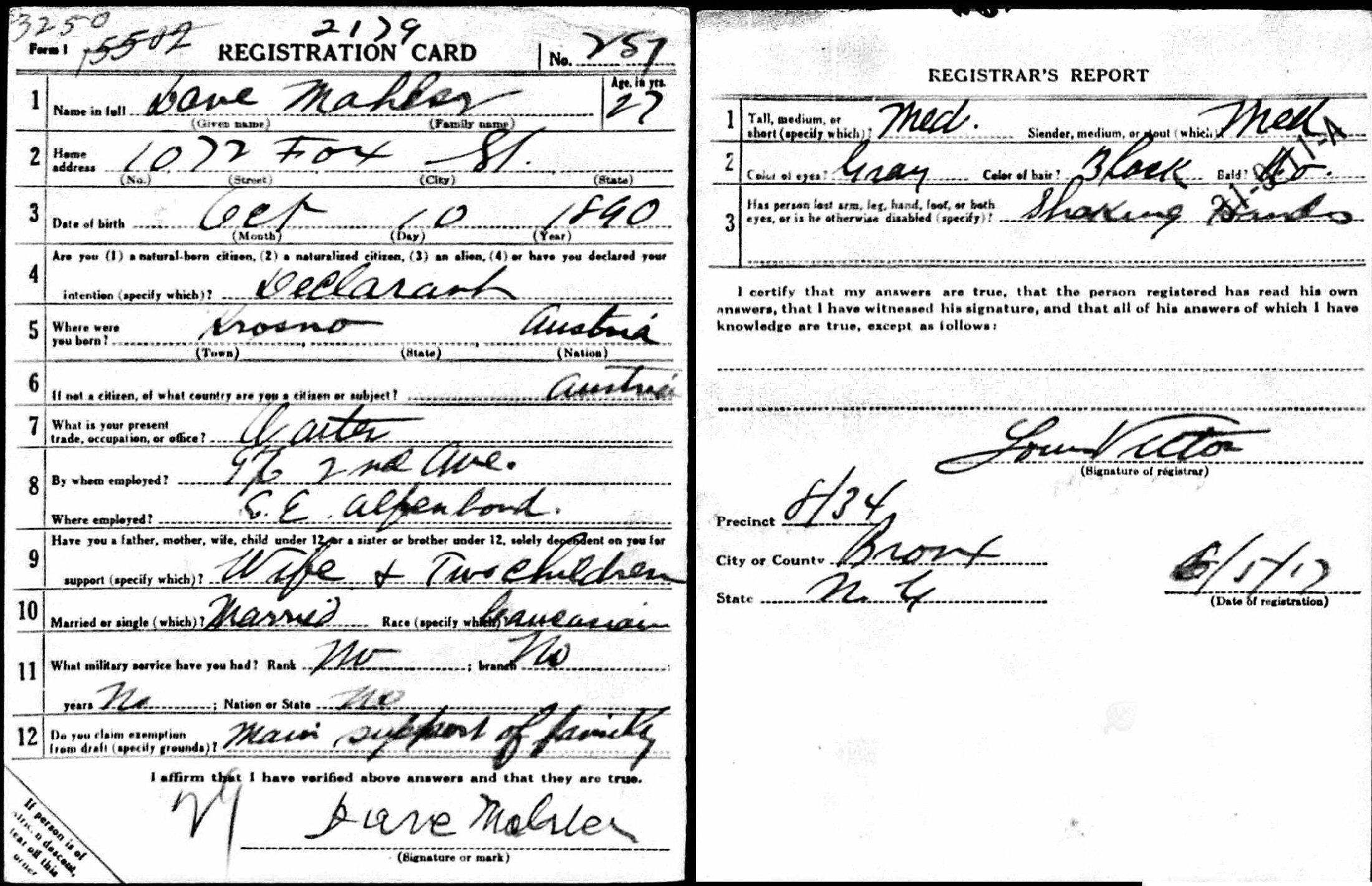 June 5, 1917 - 1072 Fox Street, Bronx, New York.