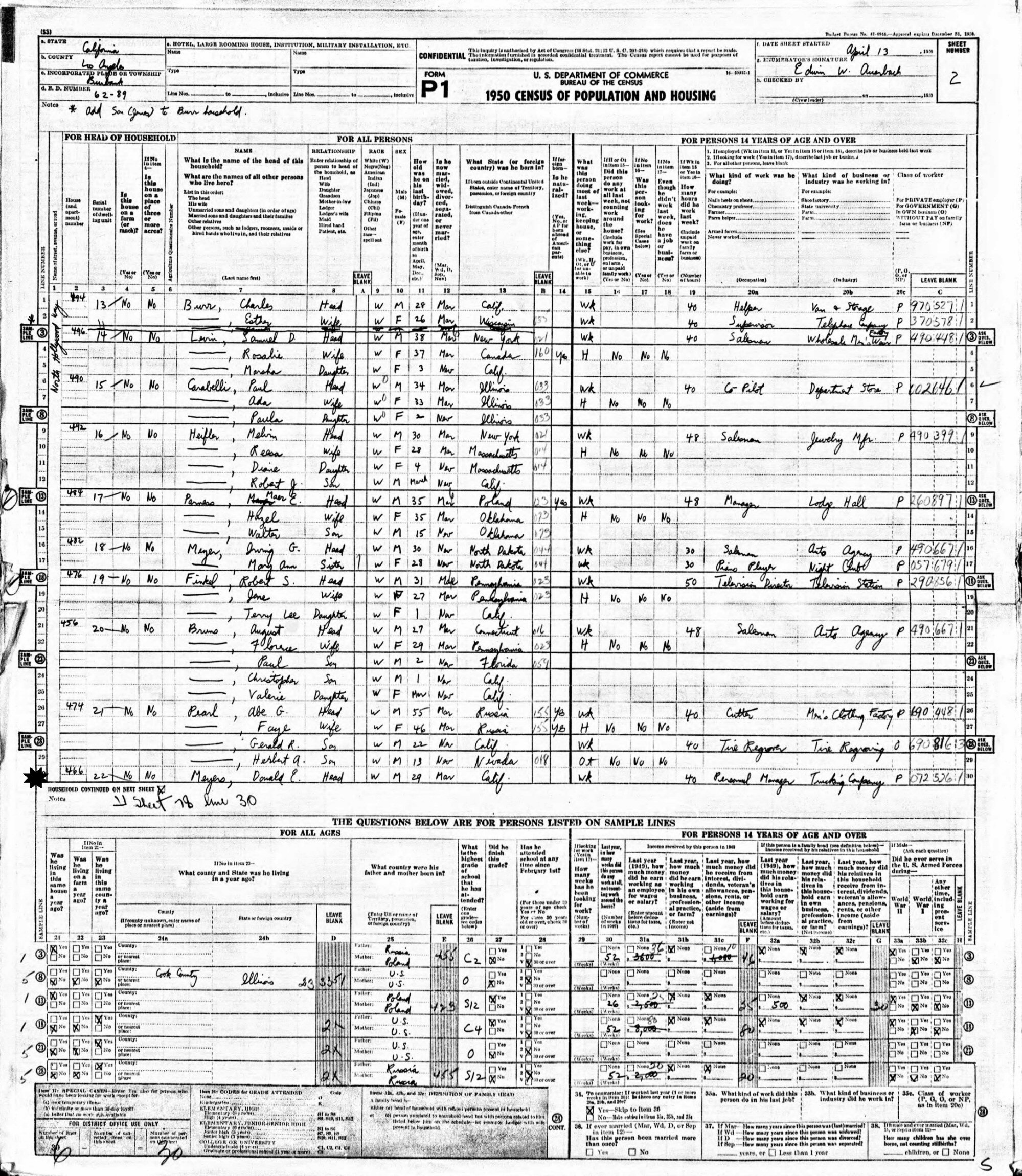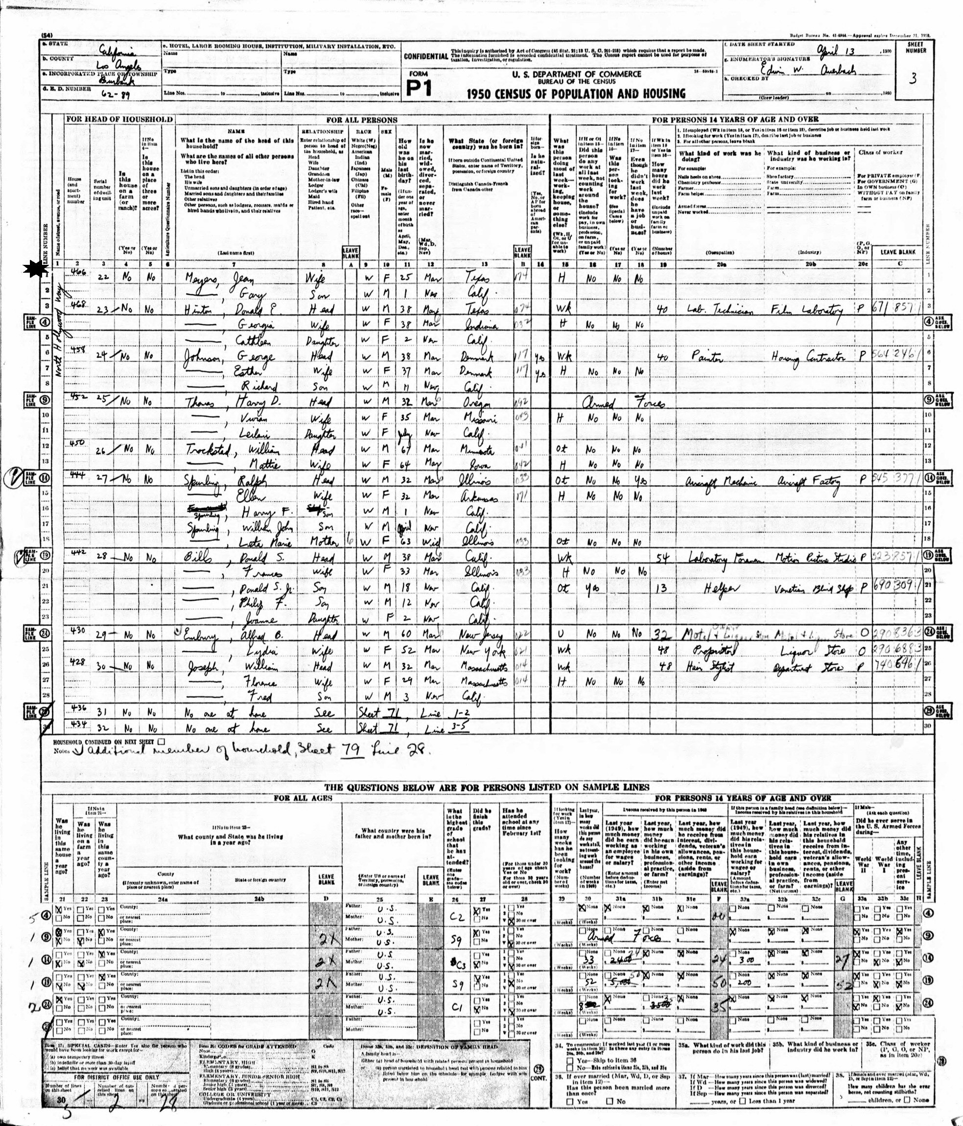 April 13, 1950 - 466 North Hollywood Way, Enumeration District 62-89, Burbank, Los Angeles County, California.
