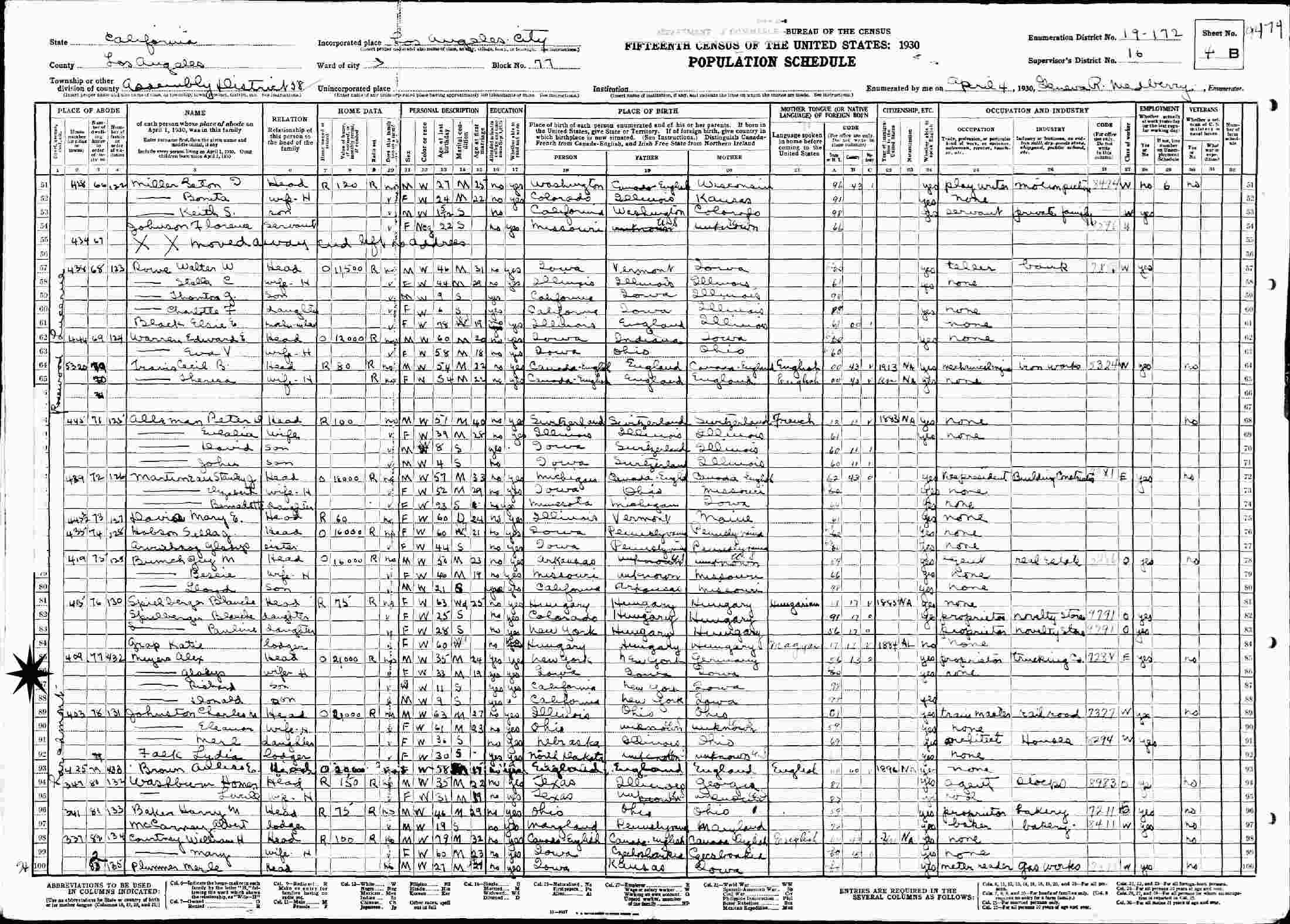 April 4, 1930 - 409 Larchmont, Assembly District 58, Los Angeles, Los Angeles County, California.