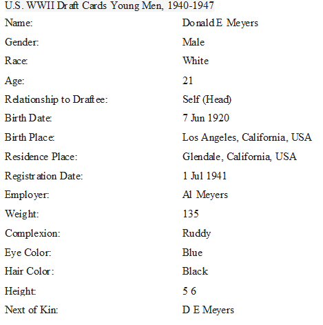 Notes for DONALD EDWIN MEYERS: