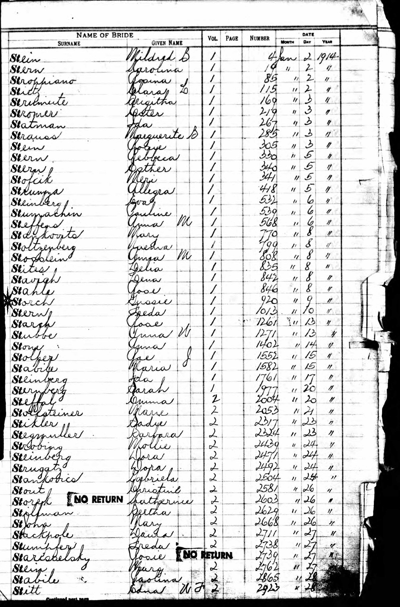 Married: David Mahler January 27, 1914 in Manhattan, New York. (License January 9, 1914, Manhattan, #920.)