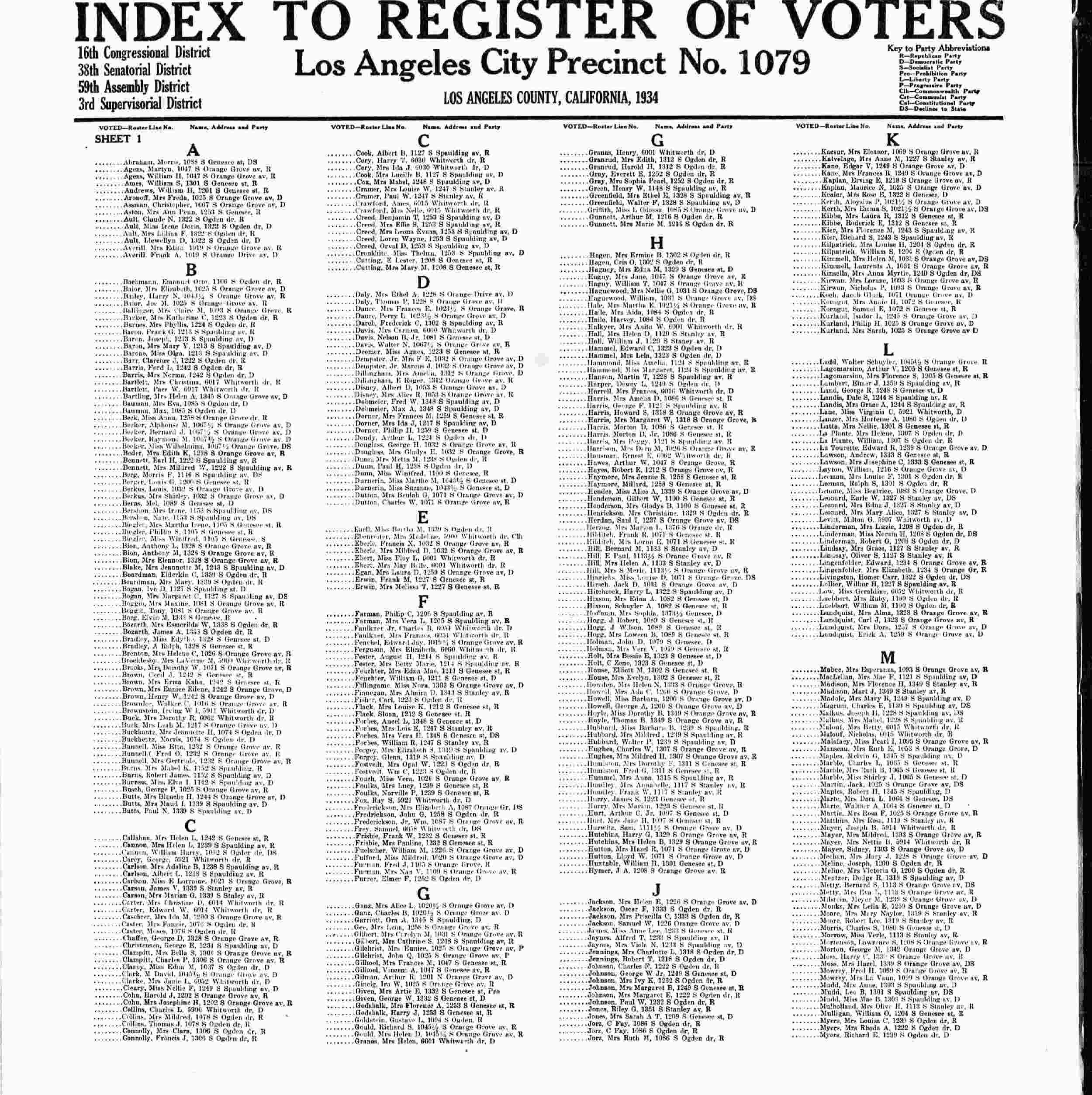 1934 - 1025 S Orange Grove Avenue, Los Angeles, Los Angeles County, California.