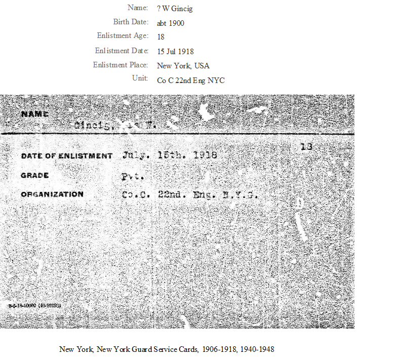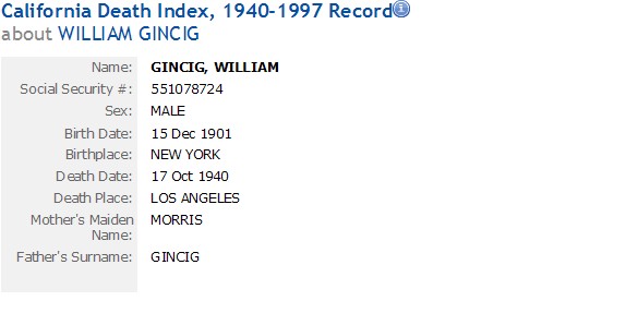 Notes for WILLIAM IRA GINCIG: