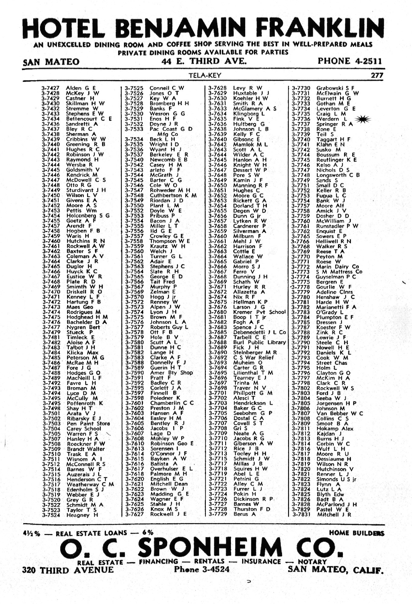 1940-1942 - 877 California Drive, San Mateo, San Mateo County, California.