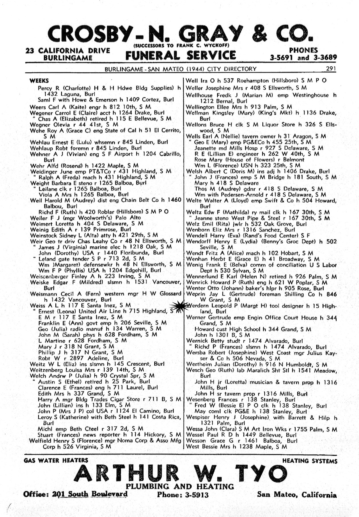 1943-1946 - 15 Highland, Burlingame, Hillsborough, San Mateo County, California.