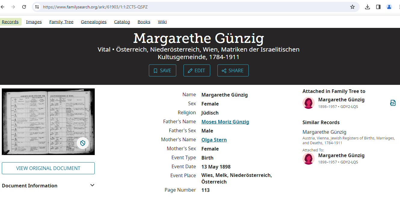 Notes for MARGARET GRETE GUNZIG WERDEN: