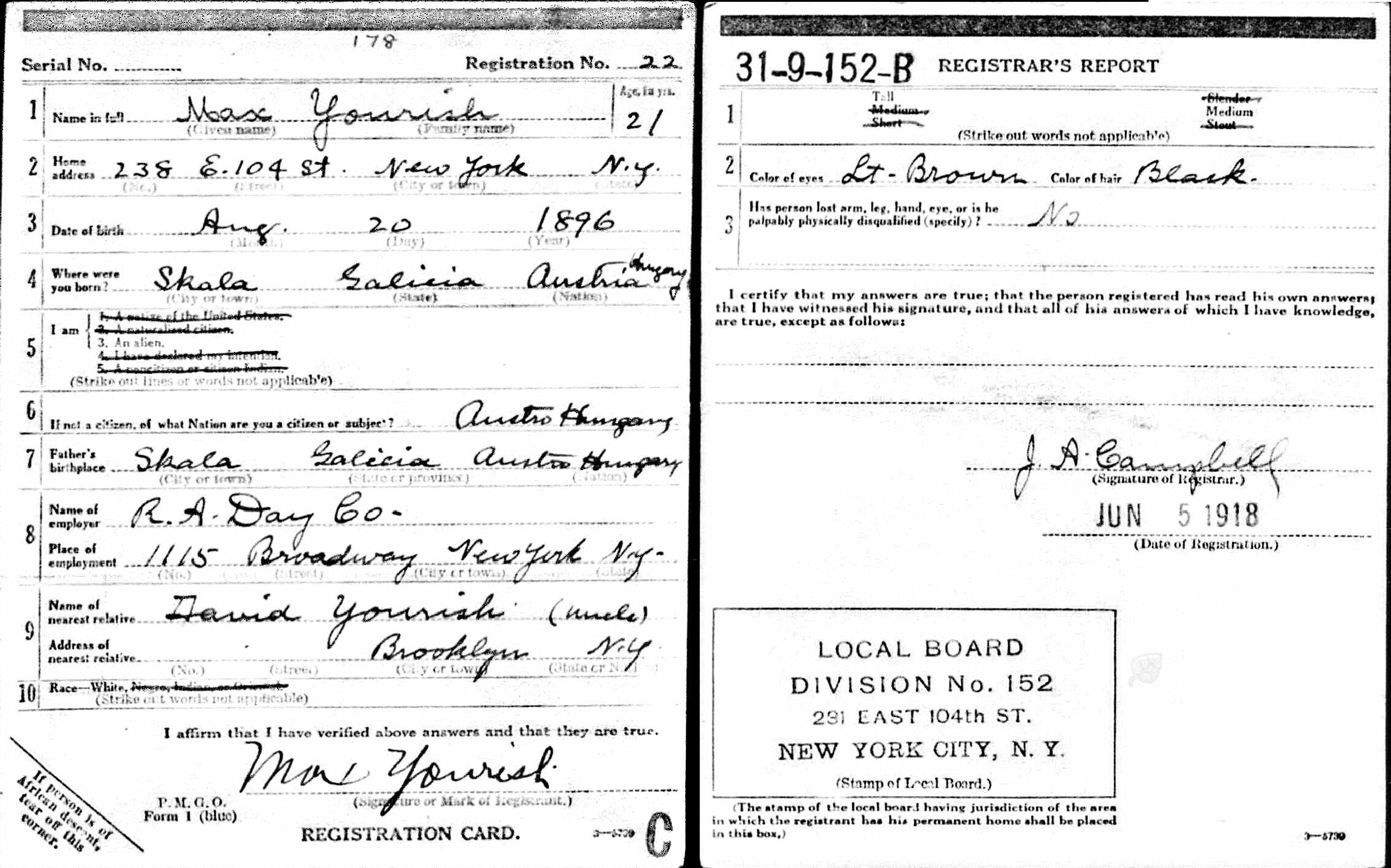 Son of Isaac and Goldie (Goldstein) Yourish.