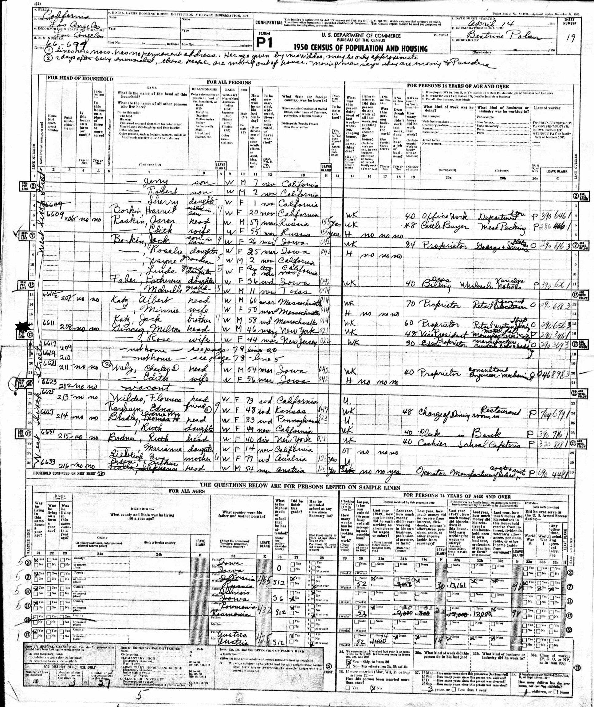 April 14, 1950 - 611 Sixth Street, Enumeration District 66-697, Los Angeles, Los Angeles County, California.
