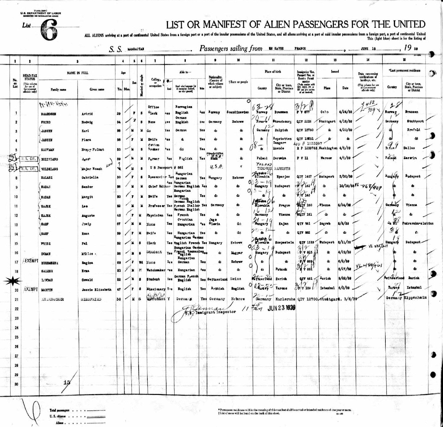 Immigration: June 23, 1939 - S.S. Manhattan - Le Havre, France to New York, New York.