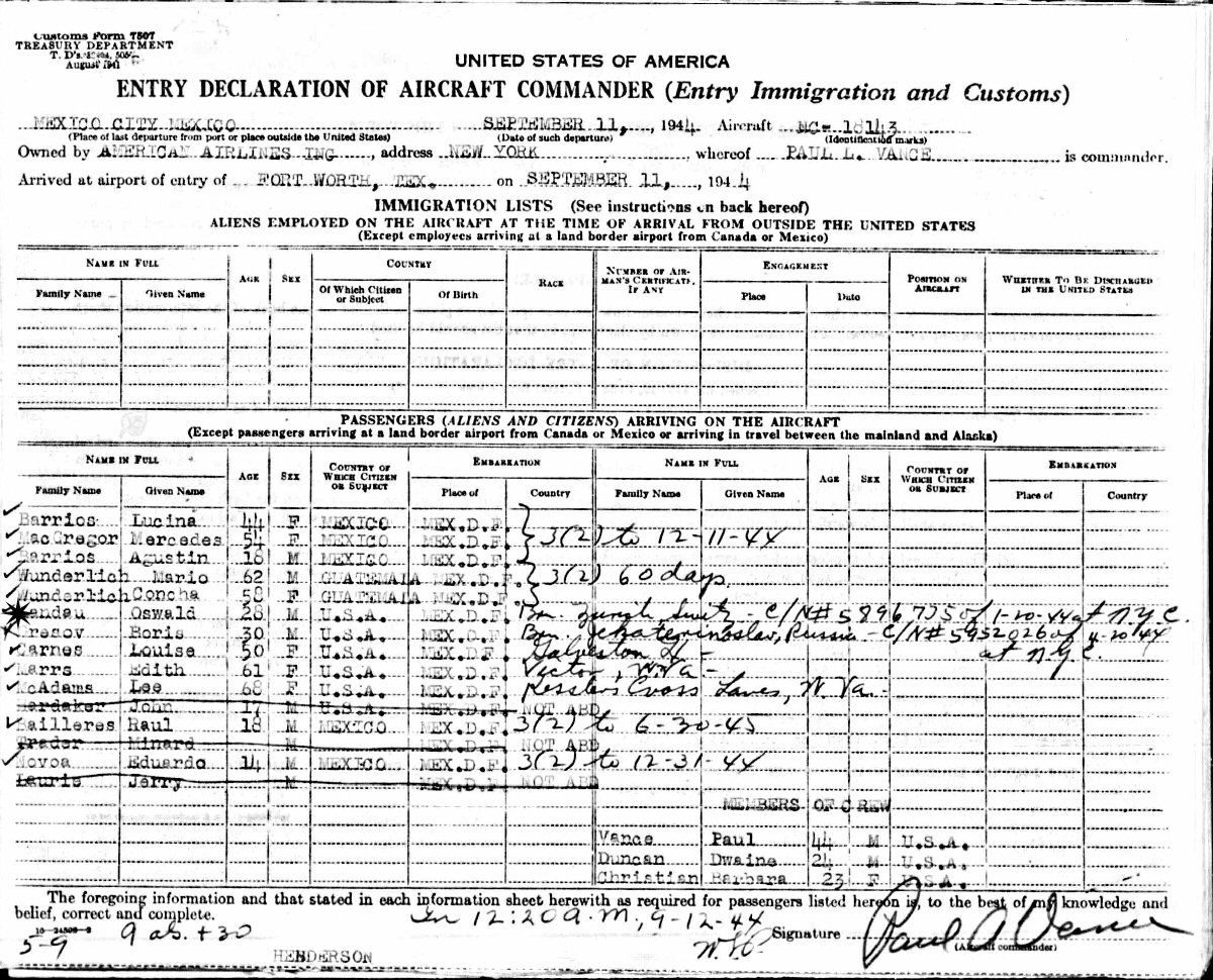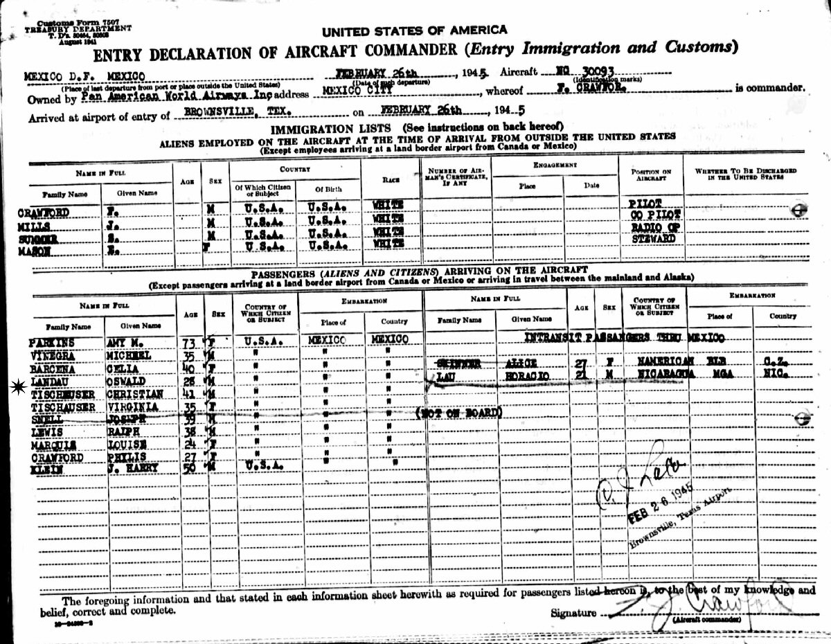 February 26, 1945 - Mexico to U.s. - Pan Am Airlines
