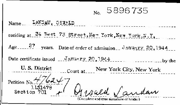 Petition For Naturalization: January 1, 1944 in New York City, New York.