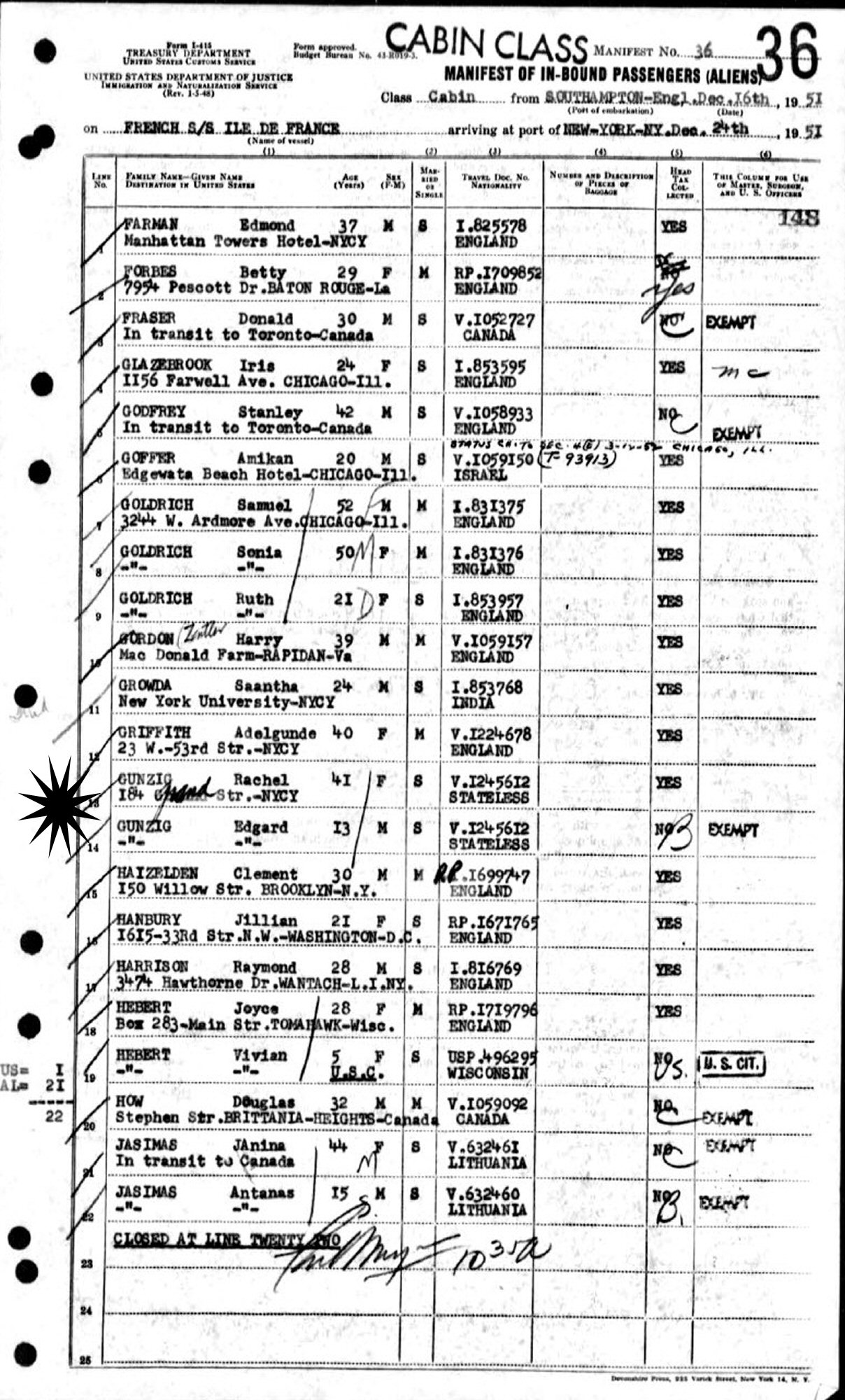 NOTES: Here on business for 6 weeks to Gold Leaf and Powders, 116 Nassua St NYC, NY.