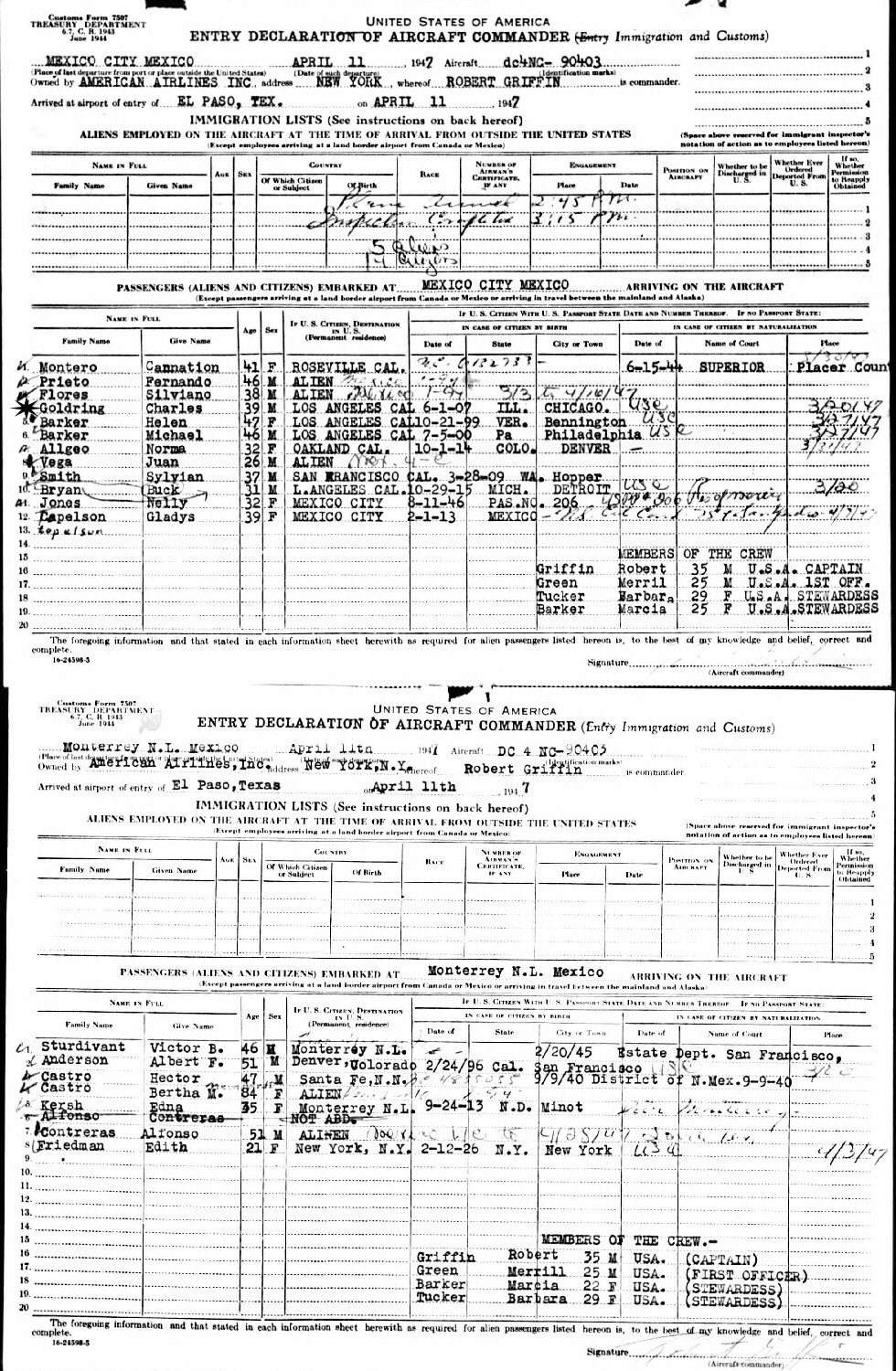 April 11 1947 - Mexico City, Mexico to El Paso, Texas.
