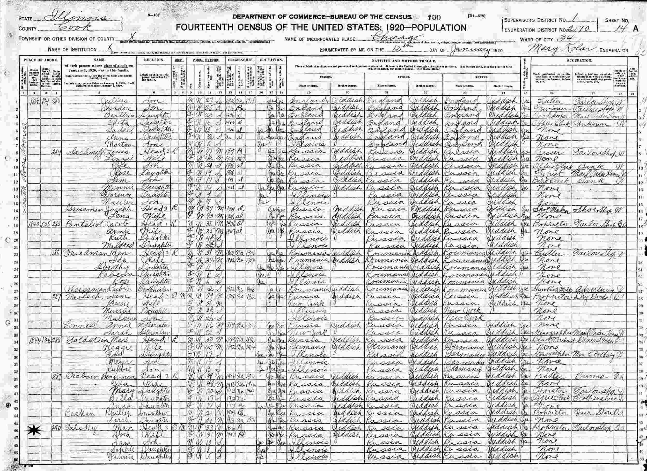 January 12, 1920 - 1846 South Avers Avenue, Ward 34, Supervisor's District 1, Enumeration District 2170, Chicago, Cook County, Illinois.
