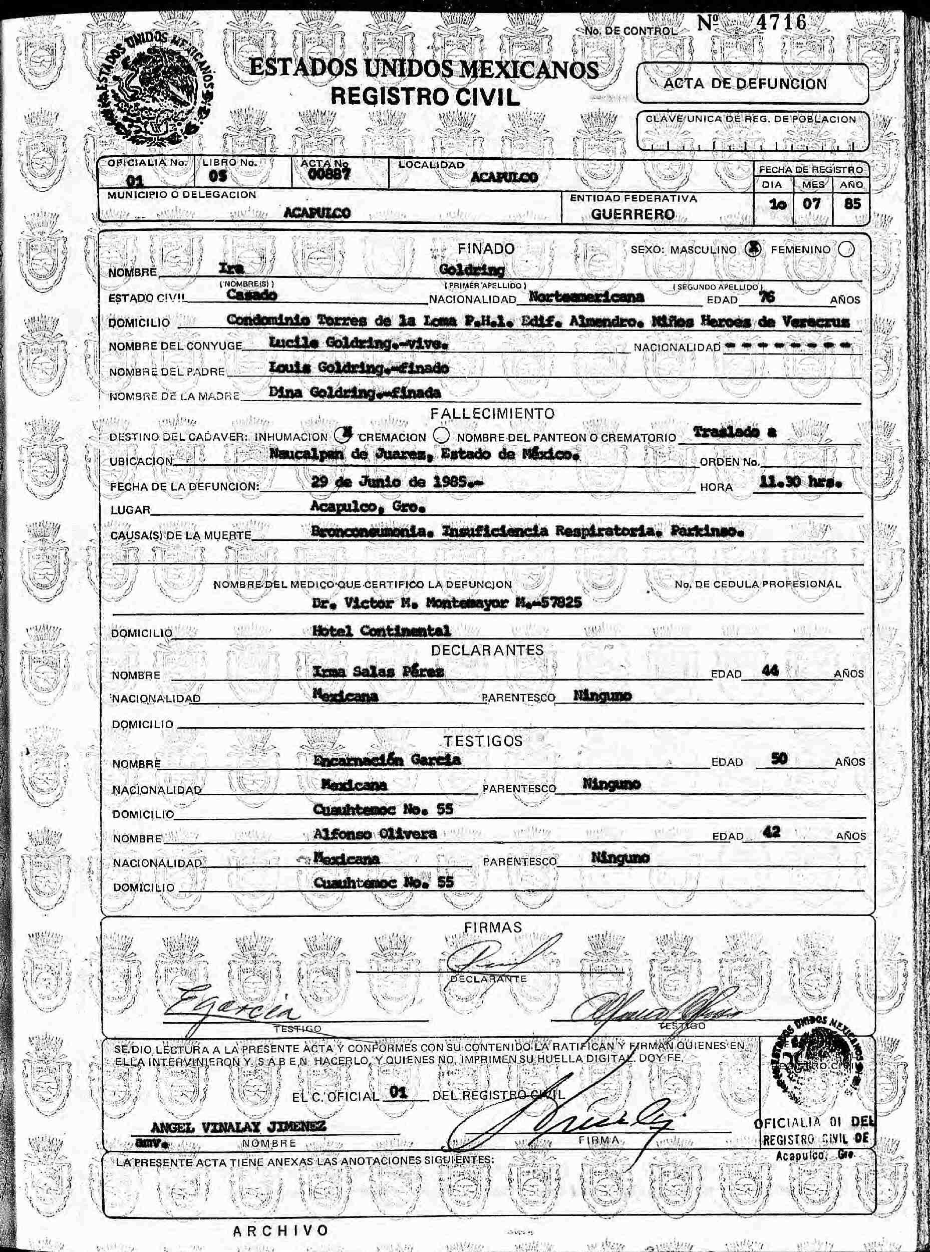 Died: June 29, 1985 in Acapulco, Guerrero, Mexico.