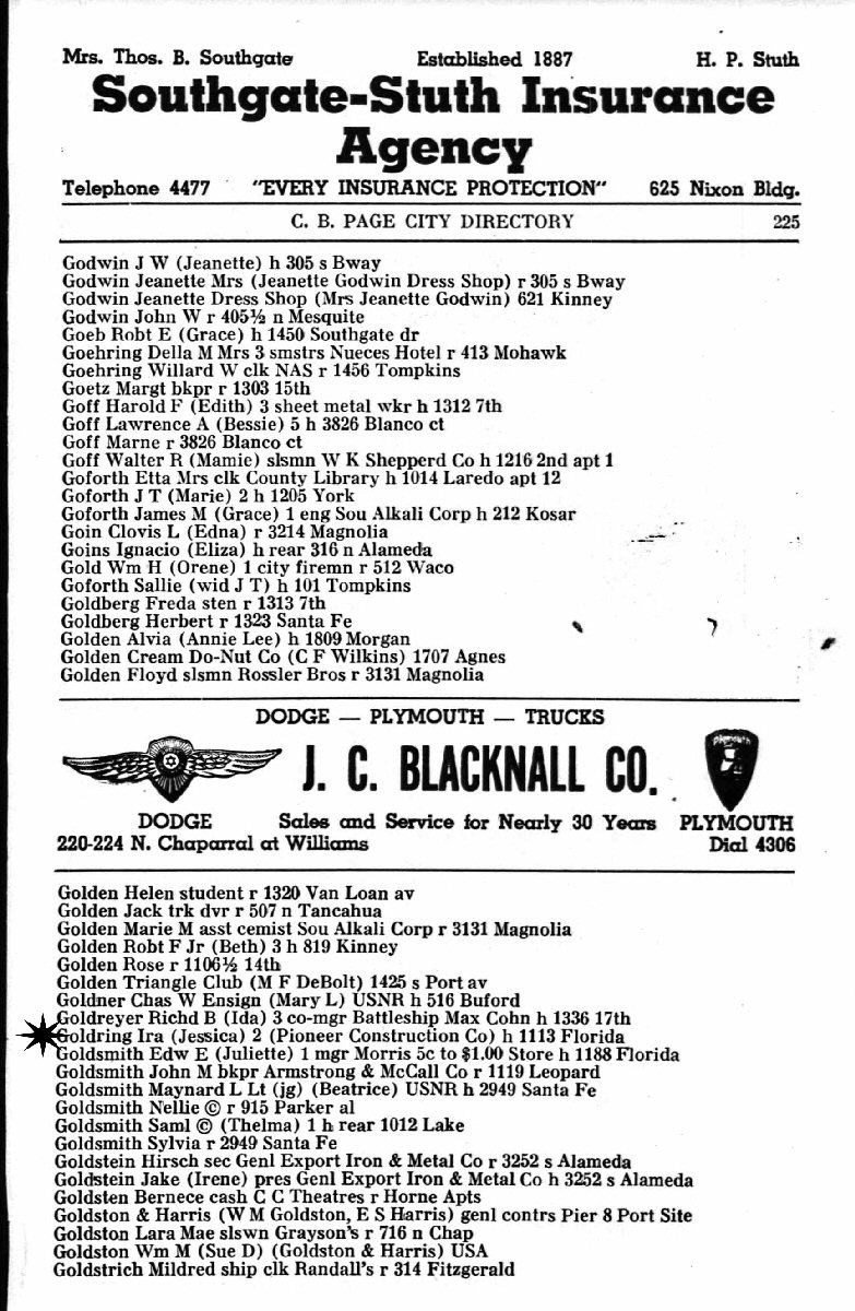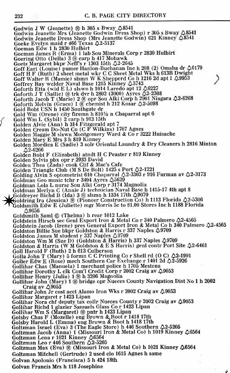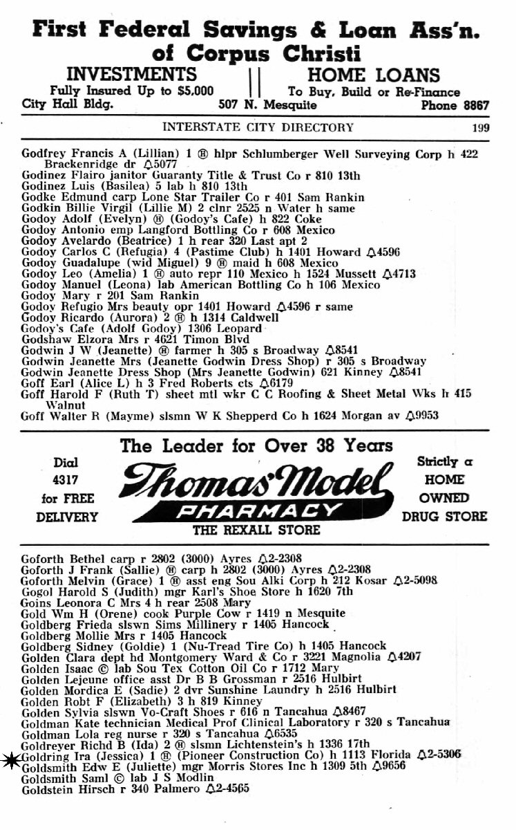 1940-1944 - 1113 Florida, Corpus Christi, Nueces County, Texas.