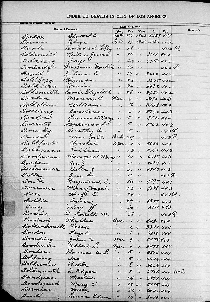 Died: April 5, 1943 in Los Angeles, Los Angeles County, California.