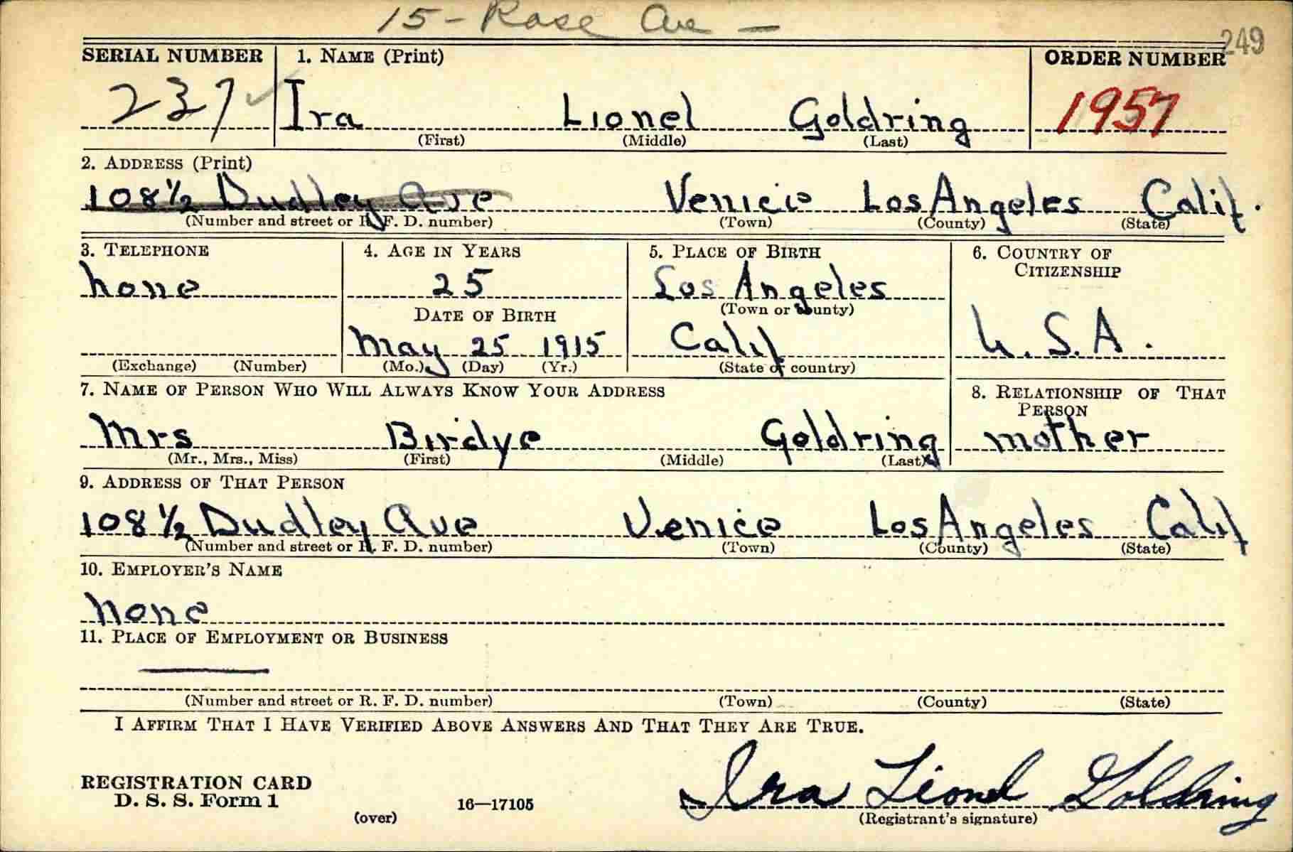 October 16, 1940 - Enlistment Date - Los Angeles, Los Angeles County, California.
