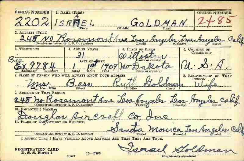 Married: (1) Ida Goldring December 30, 1928 in Los Angeles County, California.