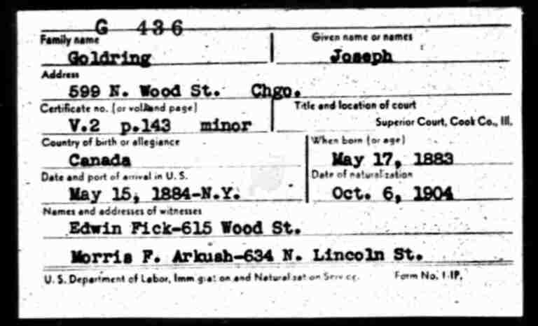 Naturalization: October 6, 1904 - 599 N Wood Street, Chicago, Cook County, Illinois.