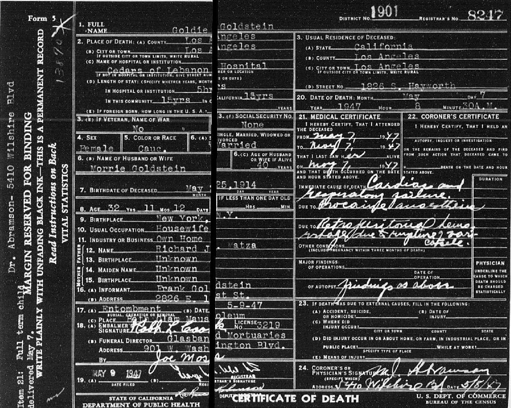 Last Residence: 1926 S Hayworth, Los Angeles, Los Angeles County, California.