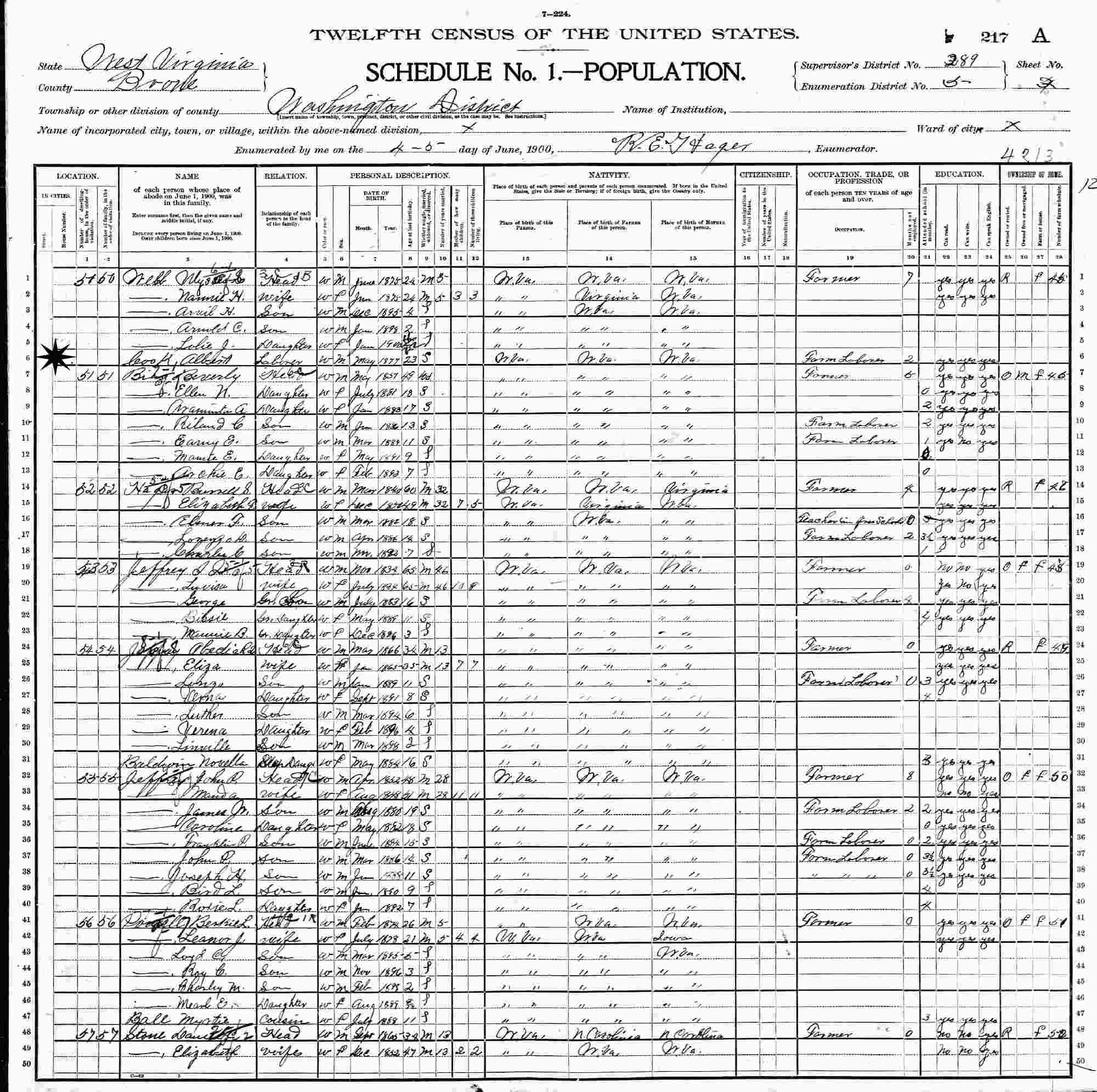 June 4-5, 1900 - Supervisor's District 289, Enumeration District 5, Washington District, Boone County, West Virginia (Boarder w/Ulysses and Nannie Webb).