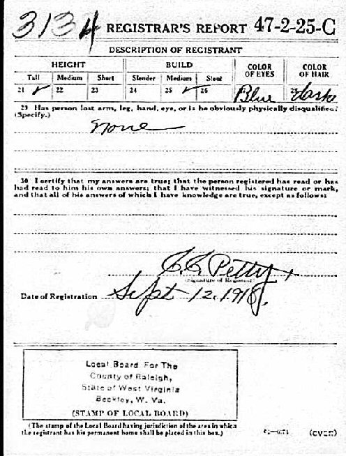Born: May 16, 1875 in Bald Knob, Boone County, West Virginia.
