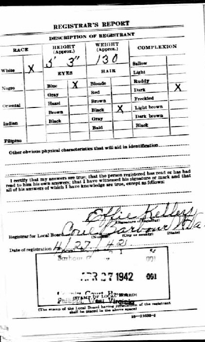 Born: July 07, 1887 in Kanawha County, West Virginia.