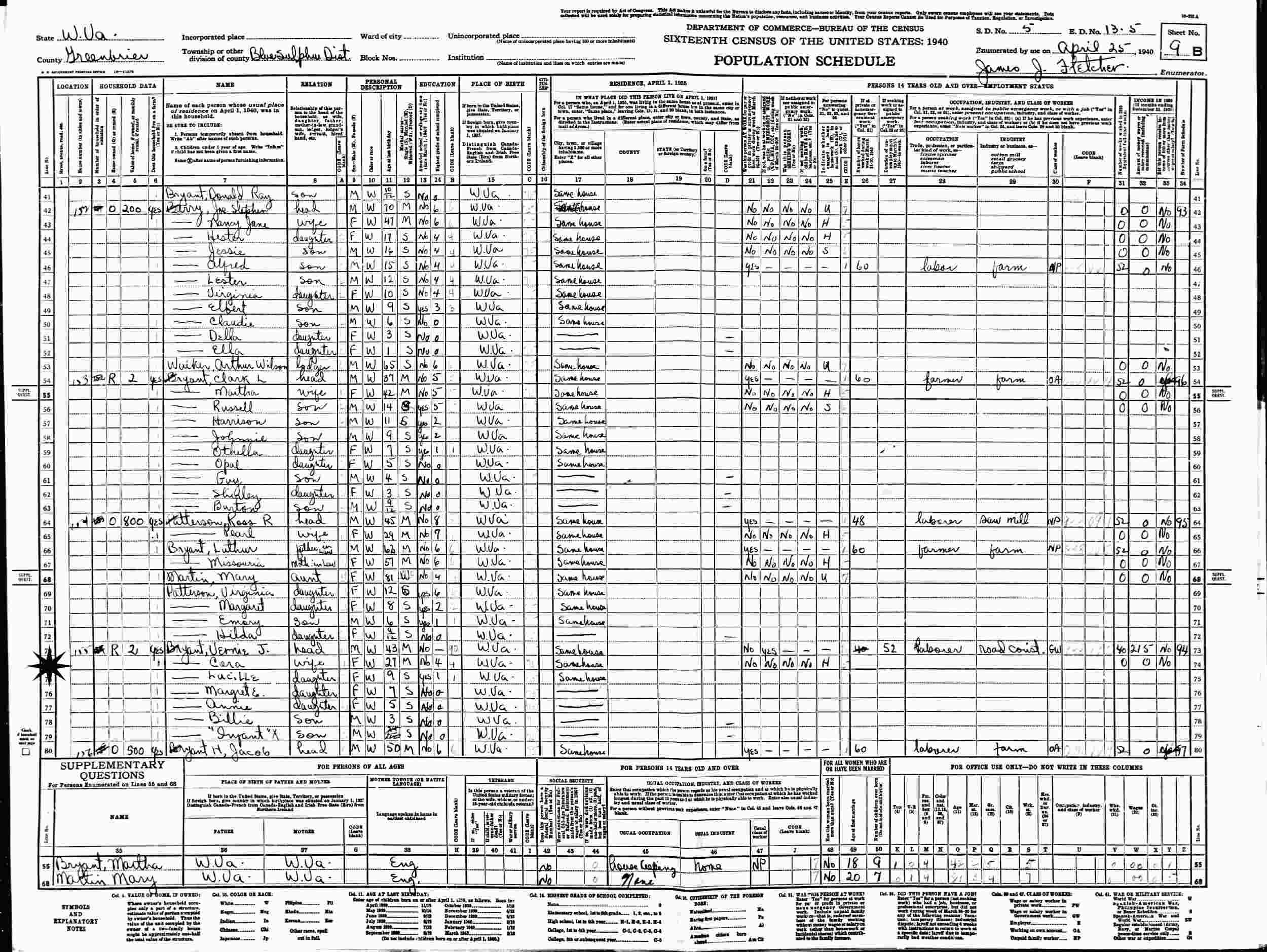 April 25, 1940 - Supervisor's District 5, Enumeration District 13-5, Blue Sulphur District, Greenbrier County, West Virginia.