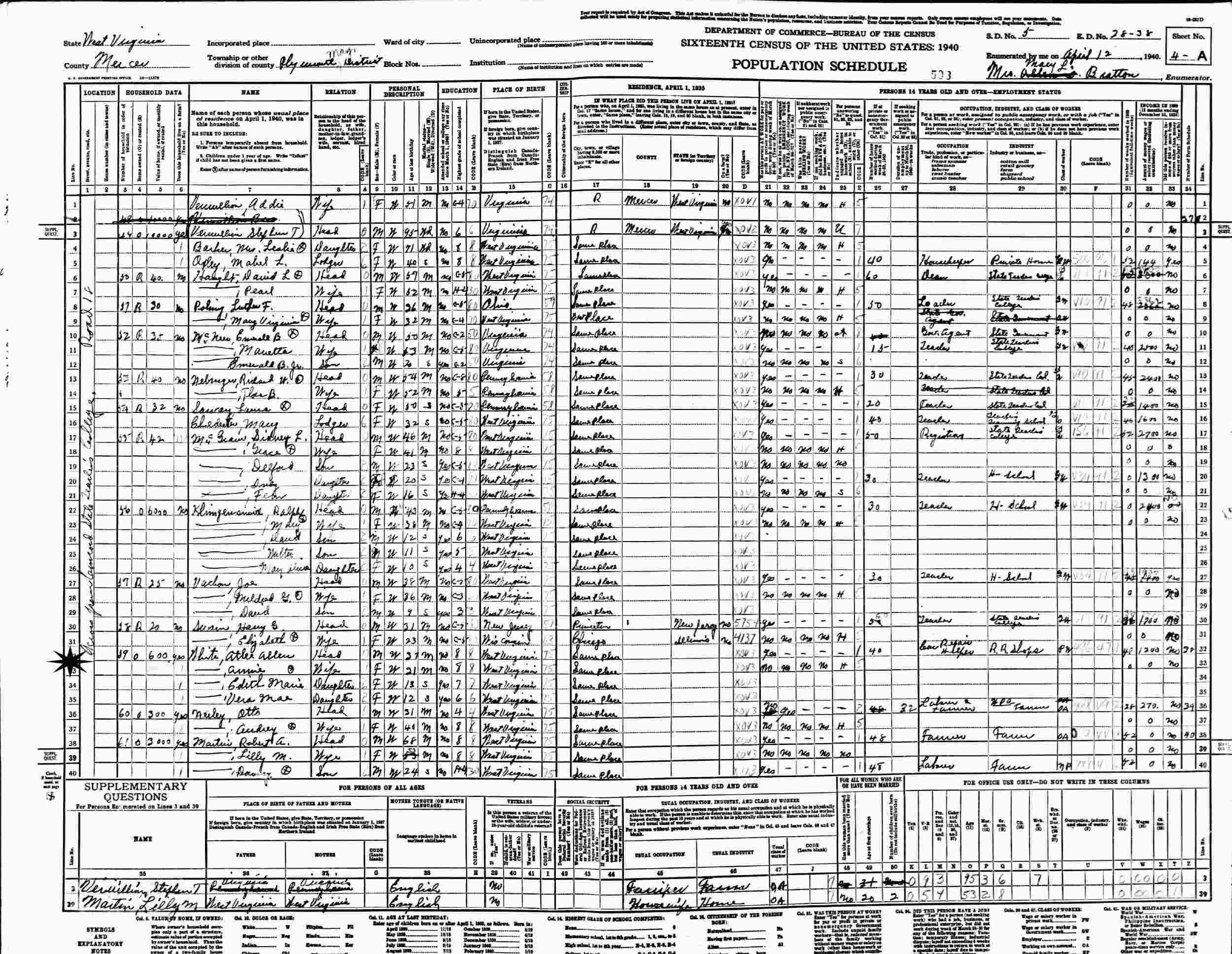 April 12, 1940 - Across from Concord State Teachers' College, Supervisor's District 5, Enumeration District 28-38, Plymouth Magisterial District, Mercer County, West Virginia.