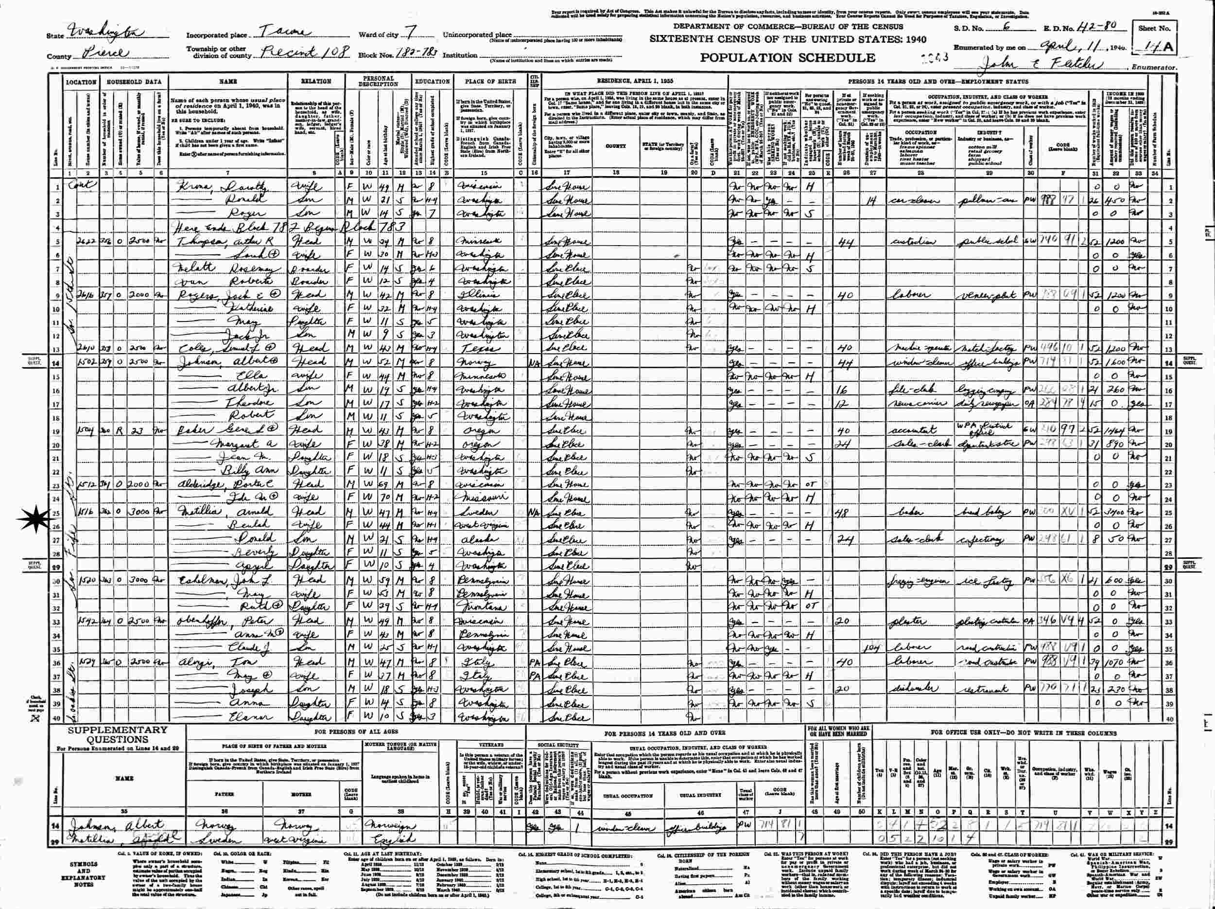 April 11, 1940 - 1516 S. Fife Street, Precinct 108, Ward 7, Block 182-183, Supervisor's District 6, Enumeration District 42-80, Tacoma, Pierce County, Washington.