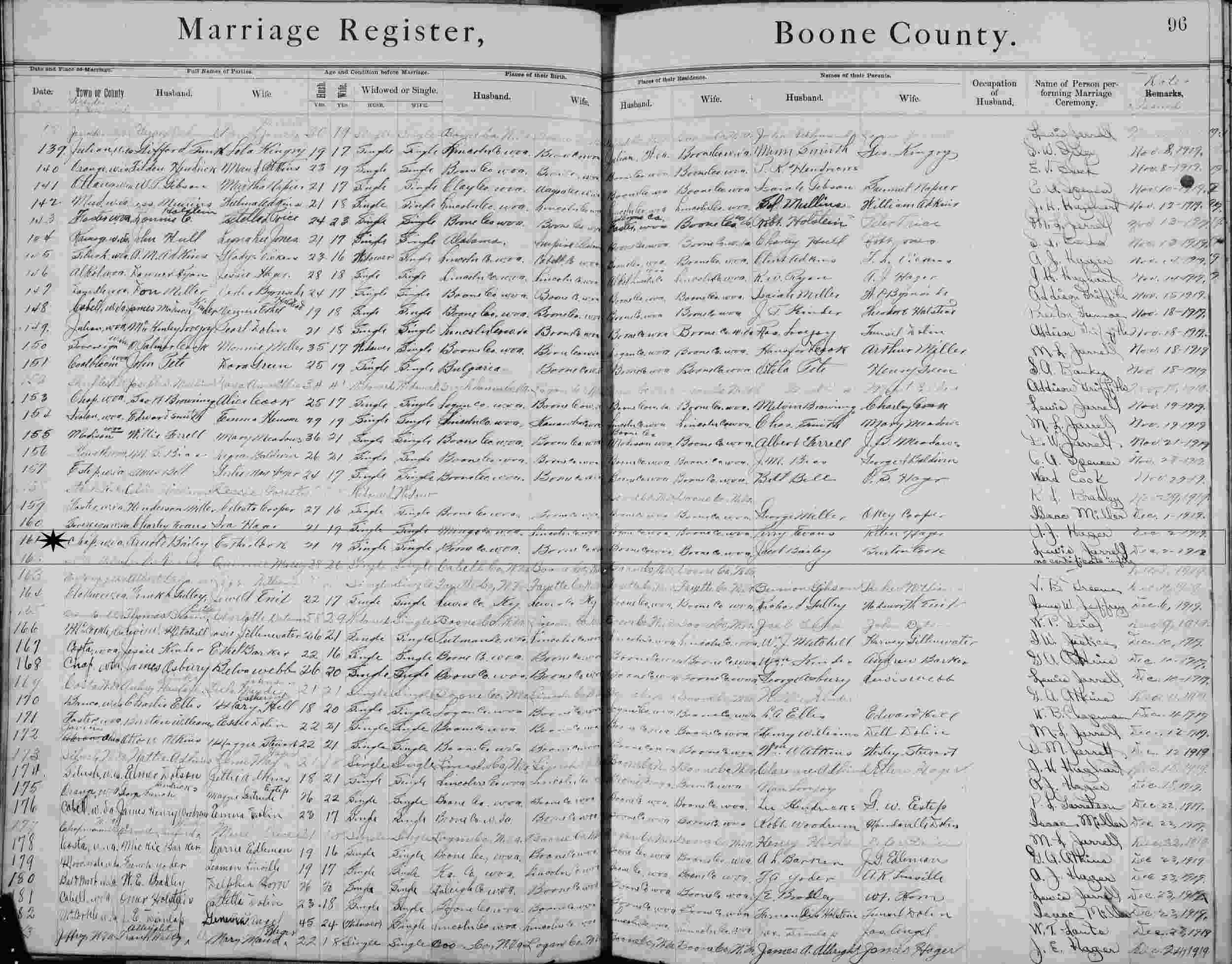 Married: Esther Cook December 3, 1919 in Chap, Boone County, West Virginia. (Marriage License: December 2, 1919.)
