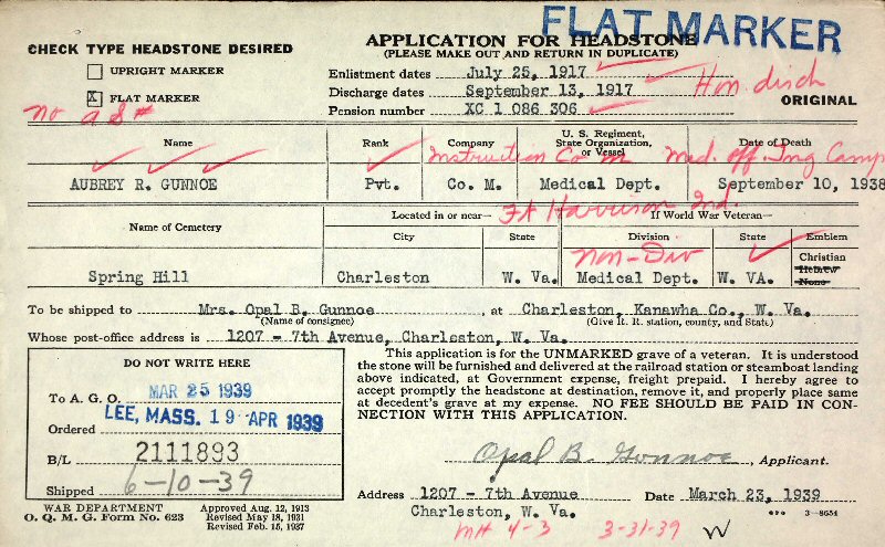 Died: September 10, 1938 in Charleston, Kanawha County, West Virginia.