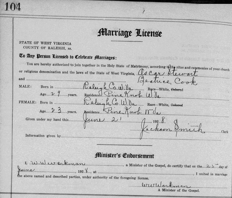 (2) Henry Oscar Stewart June 28, 1928 in Raleigh County, West Virginia.