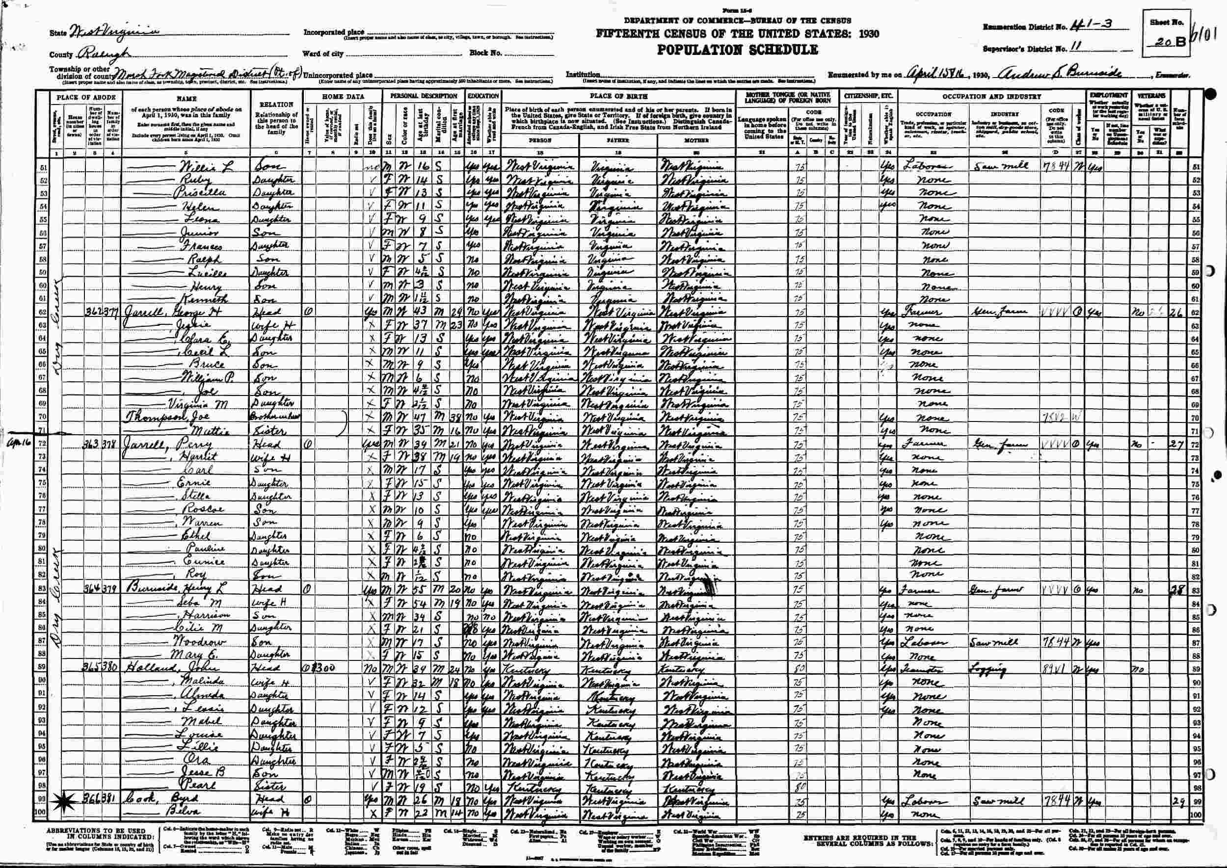 April 15-16, 1930 - Supervisor's District 11, Enumeration District 41-3, Dry Creek, Marsh Fork Magisterial District, Raleigh County, West Virginia.