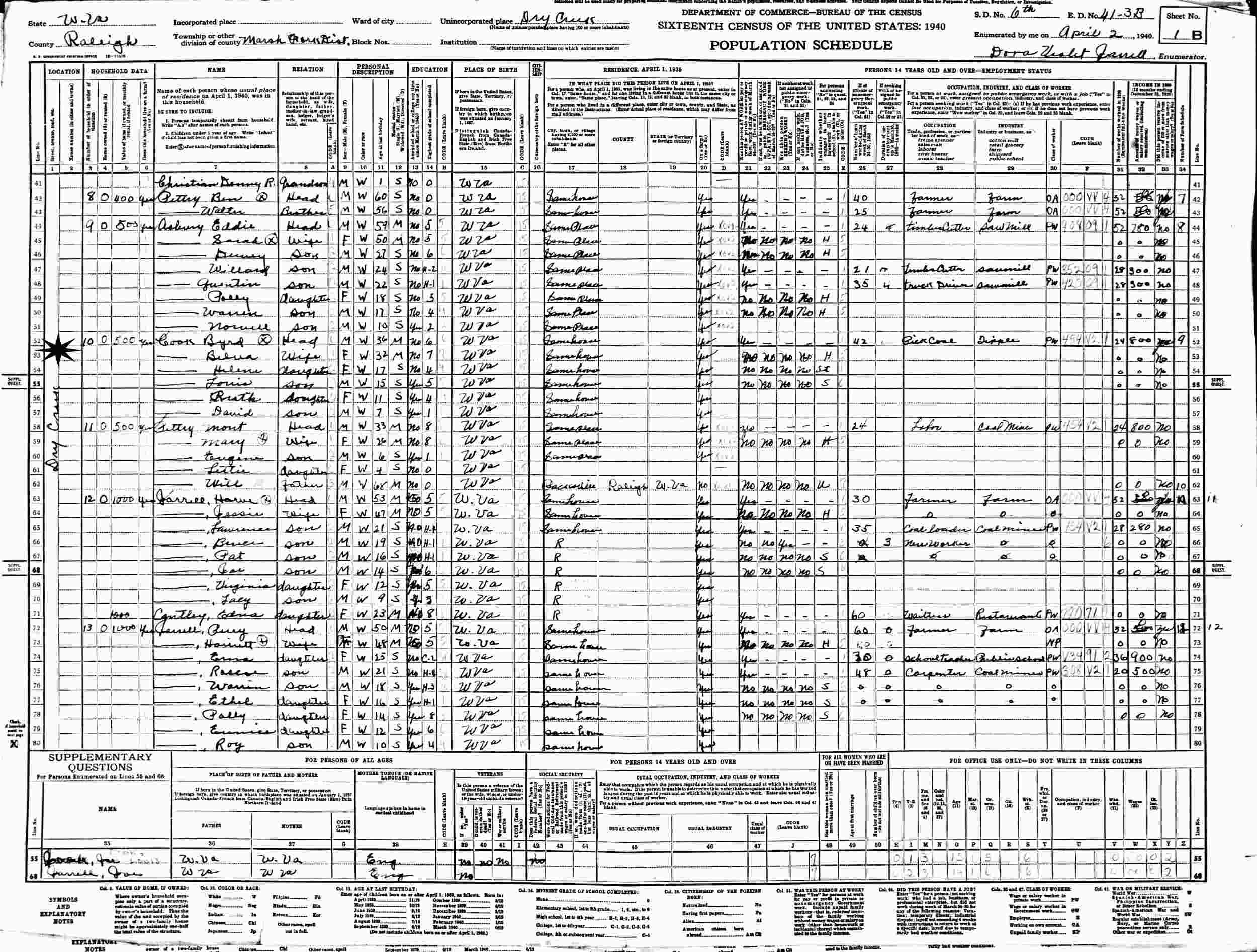 April 2, 1940 - Supervisor's District 6, Enumeration District 41-3B, Dry Creek, Marsh Fork District, Raleigh County, West Virginia.