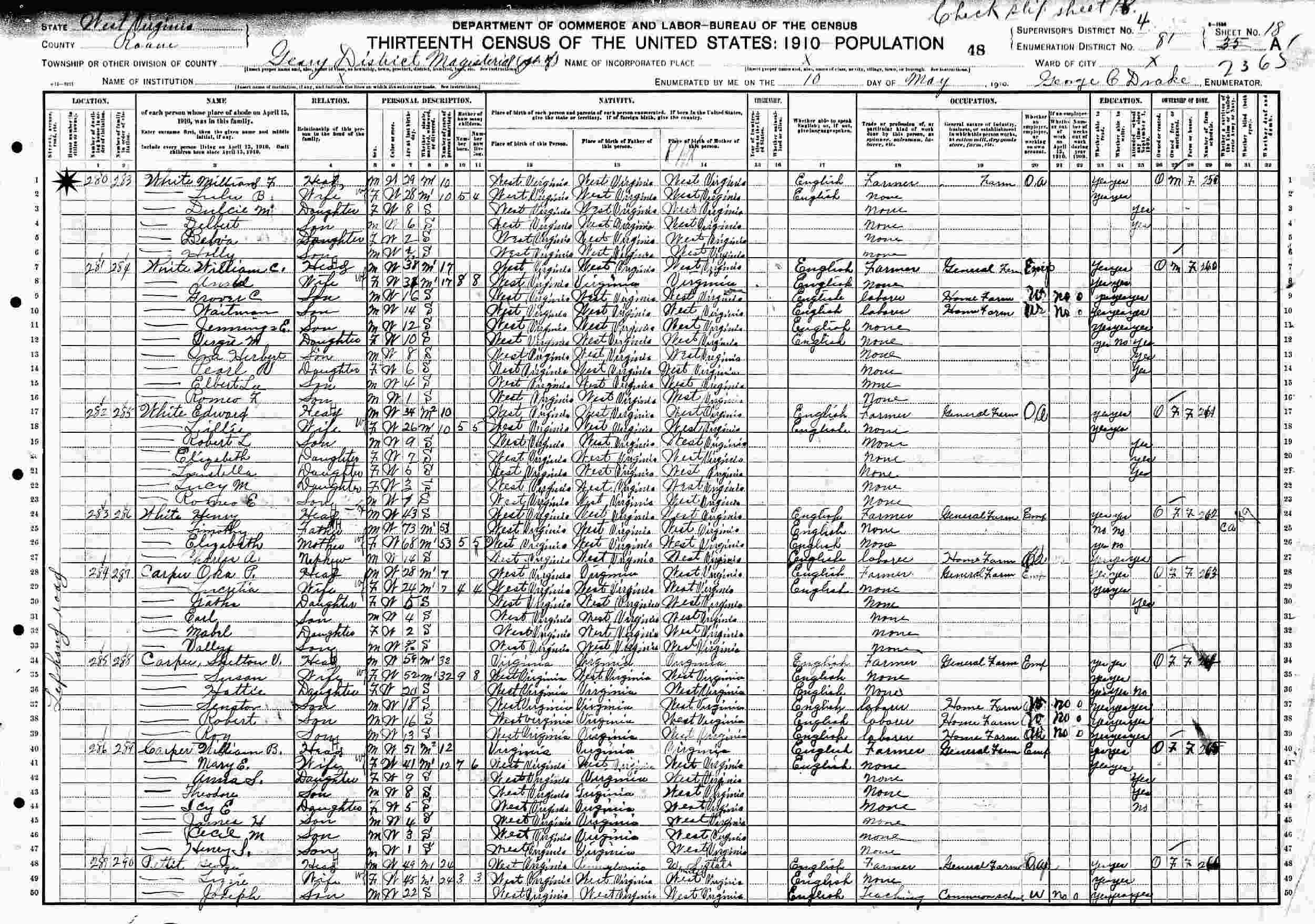 May 10, 1910 - Supervisor's District 4, Enumeration District 81, Geary Magisterial District, Roane County, West Virginia.