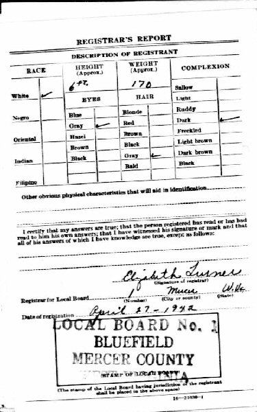 September 12, 1918 - Bald Knob, Boone County, West Virginia.