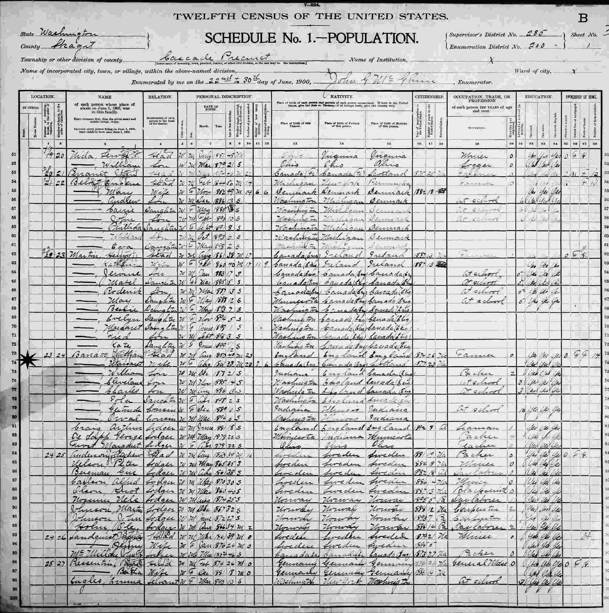 June 22, 1900 - Cascade Precinct,Supervisor's District 285, Enumeration District 200, Skagit County, Washington.