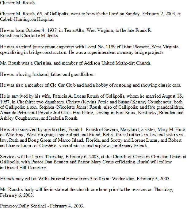 Notes for CHESTER MELVIN ROUSH: